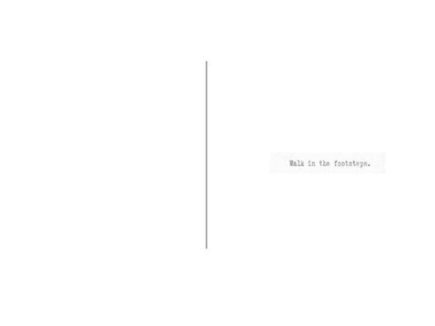 As the audience entered the forest they were taken on a hunt for the space, following and searching for signs. As they entered the space they were greeted by the text repeating 'Now walk in the footsteps'.